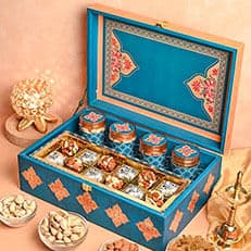 Celebrate the traditional way with our Sweets & Dry Fruits hampers. These classic, unique gift baskets include an assortment of Indian mithai, dates, almonds, cashews, and other nutritious delights. Ideal for festivals, housewarmings, or family get-togethers.